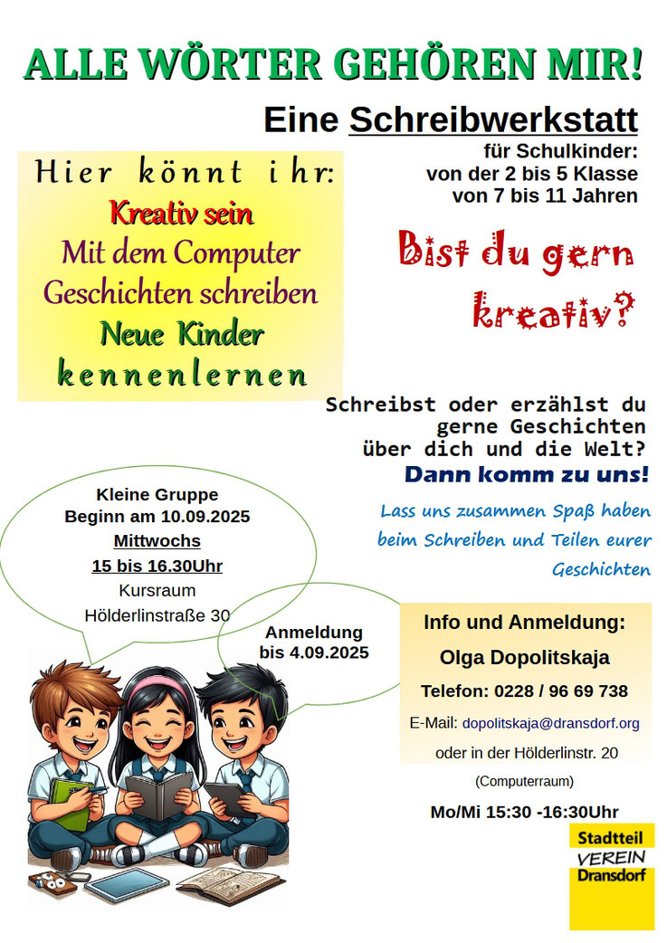 Computerkurse für 6 -7. Kl./ Textbearbeitung, Bildbearbeitung etc. Jeden letzten Donnerstag, 16:00-17:00 Uhr, Computerraum