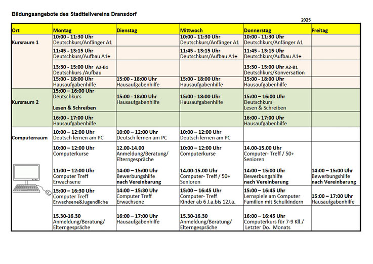 Verschiedene Kurse für Senioren im Bildungsbereich sind wichtiger Bestandteil der Seniorenarbeit des Stadtteilvereins Dransdorf e.V. Hier wird den Menschen in ihrer neuen Lebenshälfte Spaß und Freude. Geschenkt.